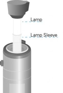 The UV lamp emits germicidal light to disinfect water, while the quartz sleeve protects the lamp from water exposure and ensures optimal UV transmission. Together, they form the core of a VIQUA UV system's water purification process.